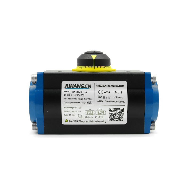 ریک اور پنیئن نیومیٹک ایکچوایٹر ڈبل اداکاری JH0020DA ، اعلی معیار ، کم رگڑ ، لمبی زندگی ، سوئچنگ ٹائمز 1 ملین سے زیادہ گنا ، اعلی استحکام۔